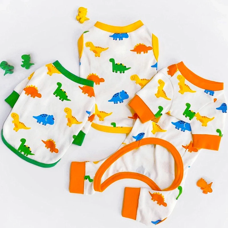 Name: Cachorro dinosaurio ropa de verano ropa playera para mascota Bichon Hiromi transpirable ropa de dibujos animados perro tocando fondo camisa jersey con perro